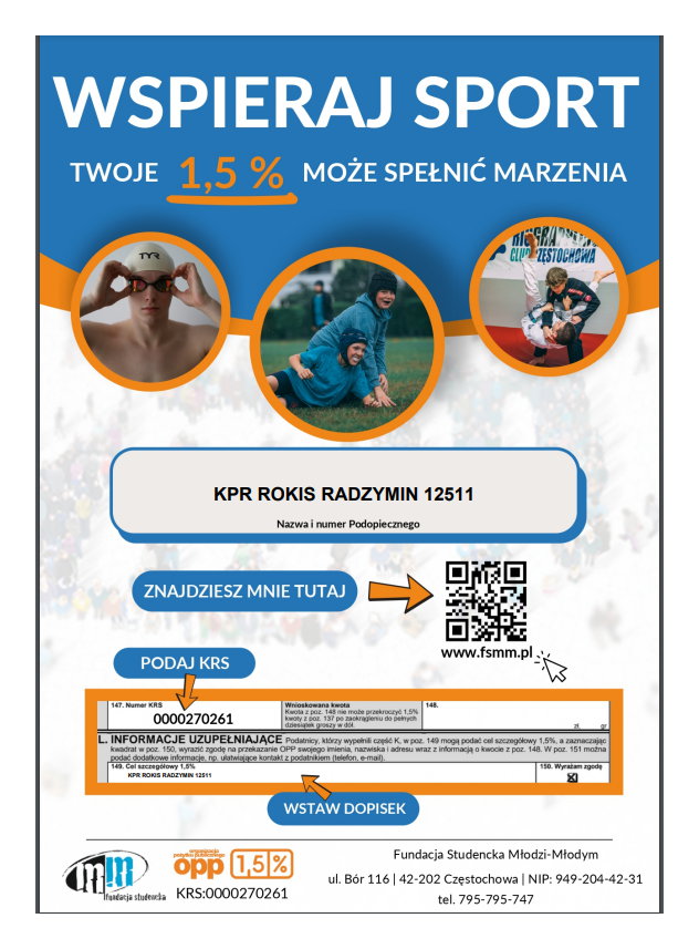 Każdą zebraną złotówkę przeznaczymy na działalność naszego klubu – szkolenie młodzieży, wyjazdy, zgrupowania, rozgrywki.